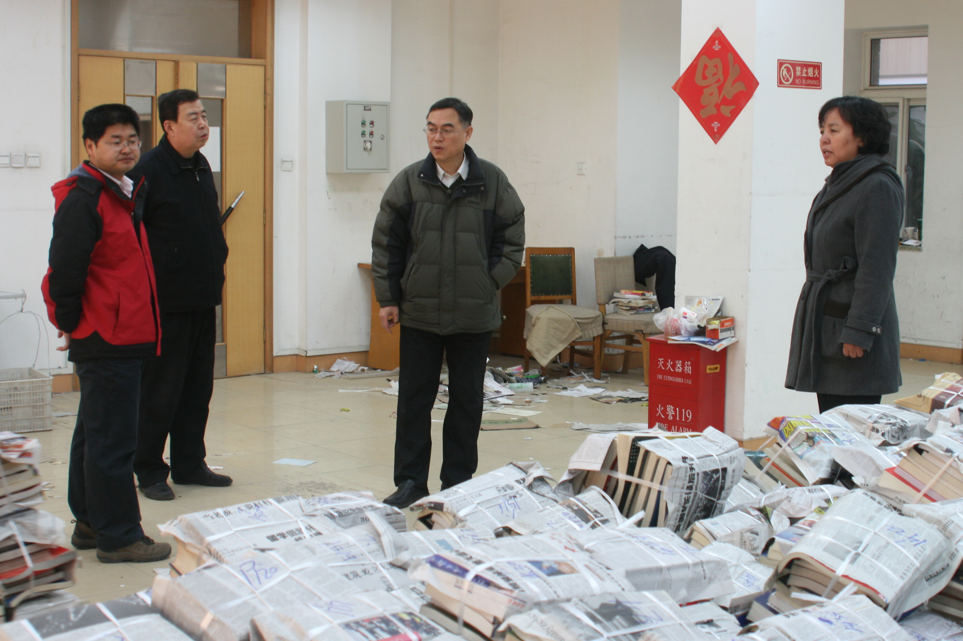 本次搬遷工作從2月28日開始,是本學期圖書館的重點工作之一。館長高潤芝在學期初的館務會上首先要求全館同志認真學習孫堯東書記的《站在新起點,全力開好局》的重要講話,并將譚向勇校長提出的“精細化管理、人本化服務”的工作目標落到實處。隨后,她對搬遷工作的文獻保護、轉運日程、組織分工、家具清點、安全保障、館舍布局等具體問題進行了全面部署,要求全體館員要有以大局為重、身先士卒的主人翁意識,要有高質量完成任務的勇氣和決心。高館長強調,防震加固期間,各業務部門要克服臨時館舍條件有限的困難,加大異地調書、館際互借、網絡查詢等工作力度,最大限度滿足讀者對文獻資源的需求,為教學和科研提供周到服務。