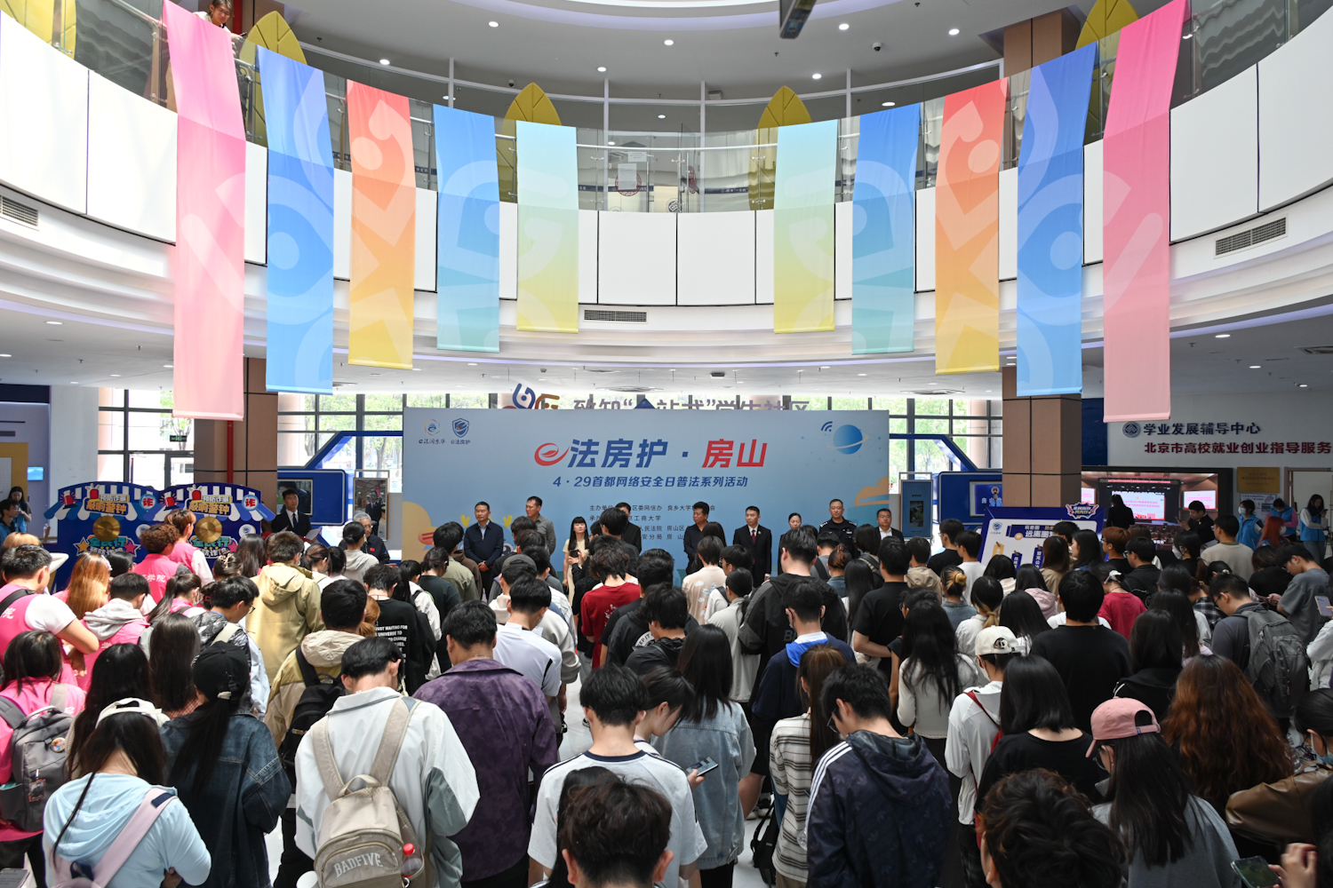 4月29日,是第十二屆“首都網(wǎng)絡(luò)安全日”。房山區(qū)網(wǎng)信辦、房山檢察院、房山法院、房山公安分局、房山團區(qū)委、良鄉(xiāng)高教園區(qū)管委會等部門與學(xué)校網(wǎng)絡(luò)與信息化管理中心、學(xué)生處、團委、保衛(wèi)處聯(lián)合舉辦4·29首都網(wǎng)絡(luò)安全日活動,開展了反詐安全宣傳、反詐安全培訓(xùn)、反詐互動體驗等系列主題活動,200余名學(xué)生反詐專員參加活動,學(xué)校黨委副書記李中奇出席活動啟動儀式。