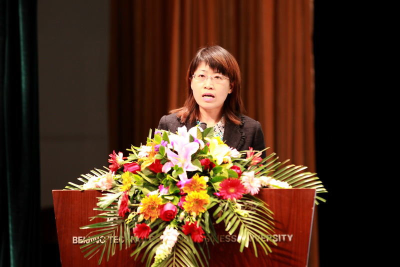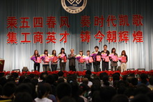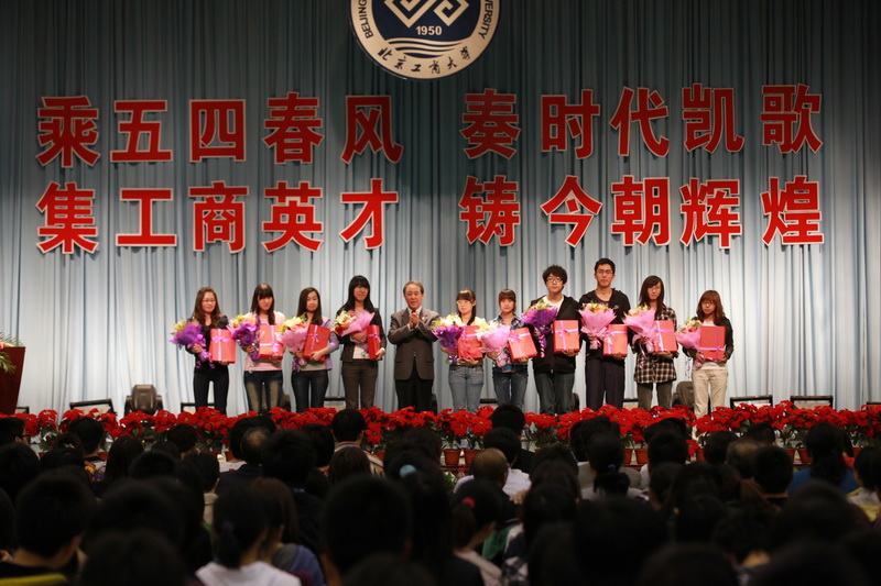 藝術與傳媒學院學生王飛代表獲獎學生發言,他表示,在紀念五四運動的同時,青年學生要發揚艱苦奮斗、勇于創新的精神,他還代表北京工商大學學生會向我校所有同學發出弘揚五四精神,認真貫徹胡錦濤書記提出的“三點希望”的倡議。