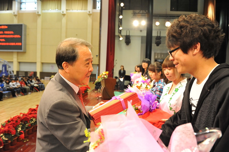 黨委副書記盧思鋒發表講話。他向全校青年學生致以節日的祝賀和親切的問候,并對獲獎團支部、團干部和團員表示祝賀。他回顧了五四運動的光榮歷史,五四運動是中國革命史上具有劃時代意義的一座豐碑,五四精神在九十二年的風雨征程中沉淀、凝聚、錘煉,依然是引領我們前進的強大力量。盧書記激勵全校青年學生繼續發揚五四精神,對我校青年學生在繼承和發揚五四光榮傳統和優良作風方面予以了肯定和贊揚。在五四青年節來臨之際,胡錦濤總書記在慶祝清華大學建校100周年大會上對全國青年提出了“要把文化知識學習和思想品德修養緊密結合起來,要把創新思維和社會實踐緊密結合起來,要把全面發展和個性發展緊密結合起來”的三點希望,溫家寶總理與首都各界青年代表座談時提出了青年學生要“有理想,善學習,講道德,要自立,勇奮斗”的五點要求。盧書記希望同學們能夠把胡錦濤總書記的三點希望和溫家寶總理的五點要求轉化為成長成才過程中的自覺行動和主動追求。最后,盧書記希望我校青年學生反思歷史,不忘國恥;立足時代,堅定信念;追求真理,奮發向上;學以致用,創新有為;放眼未來,為中華崛起奮發圖強。