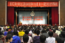 54下午,我校紀念五四運動九十二周年大會暨第十一屆藝術文化節開幕式在良鄉校區舉行。校黨委書記孫堯東,黨委副書記盧思鋒出席會議。大會由學生處處長呂素香主持。