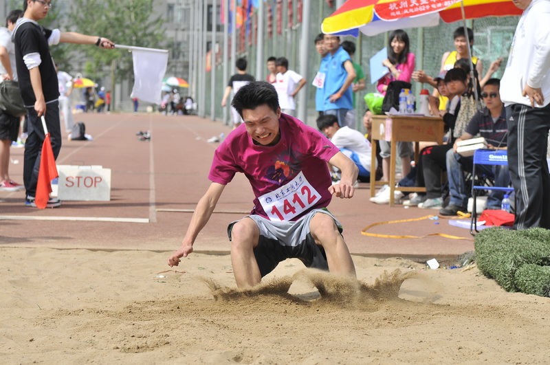 助跑、加速、踏板、騰空、前沖!5月7日下午,運動員們速度、力量與技巧的完美結合讓大家欣賞到了一場高水平的男子跳遠決賽。只見一名運動員箭一般的助跑,越來越快,然后在起跳板前騰空一躍——5米43,冠軍產生了!他精彩的一跳贏得了所有在場觀眾的掌聲,他便是來自嘉華學院的羅聰昆。“是堅持和拼搏讓我贏得了比賽,我為身為嘉華人而驕傲!”羅聰昆激動地說??炭嗟挠柧毢筒磺囊庵咀屗霉鸸?,也為嘉華學院在本次運動會上精彩的表現又加上了濃重的一筆。