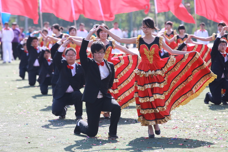 浪漫的華爾茲舞蹈和動感的健美操表演體現(xiàn)了中西文化與動感青春的結(jié)合,“凝心聚力十二五,科學(xué)發(fā)展創(chuàng)一流”的標(biāo)語,表達(dá)了嘉華師生們團(tuán)結(jié)拼搏的決心。
