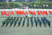 手持黃花,步伐鏗鏘,院旗飄揚(yáng),研究生部的學(xué)生們出現(xiàn)在了操場上。他們成熟穩(wěn)重,在賽場上揮灑出別樣的豪情。最后,他們高舉“賀中國共產(chǎn)黨建黨九十周年”的字板,圓滿地結(jié)束了本次運(yùn)動會的啦啦操表演。
