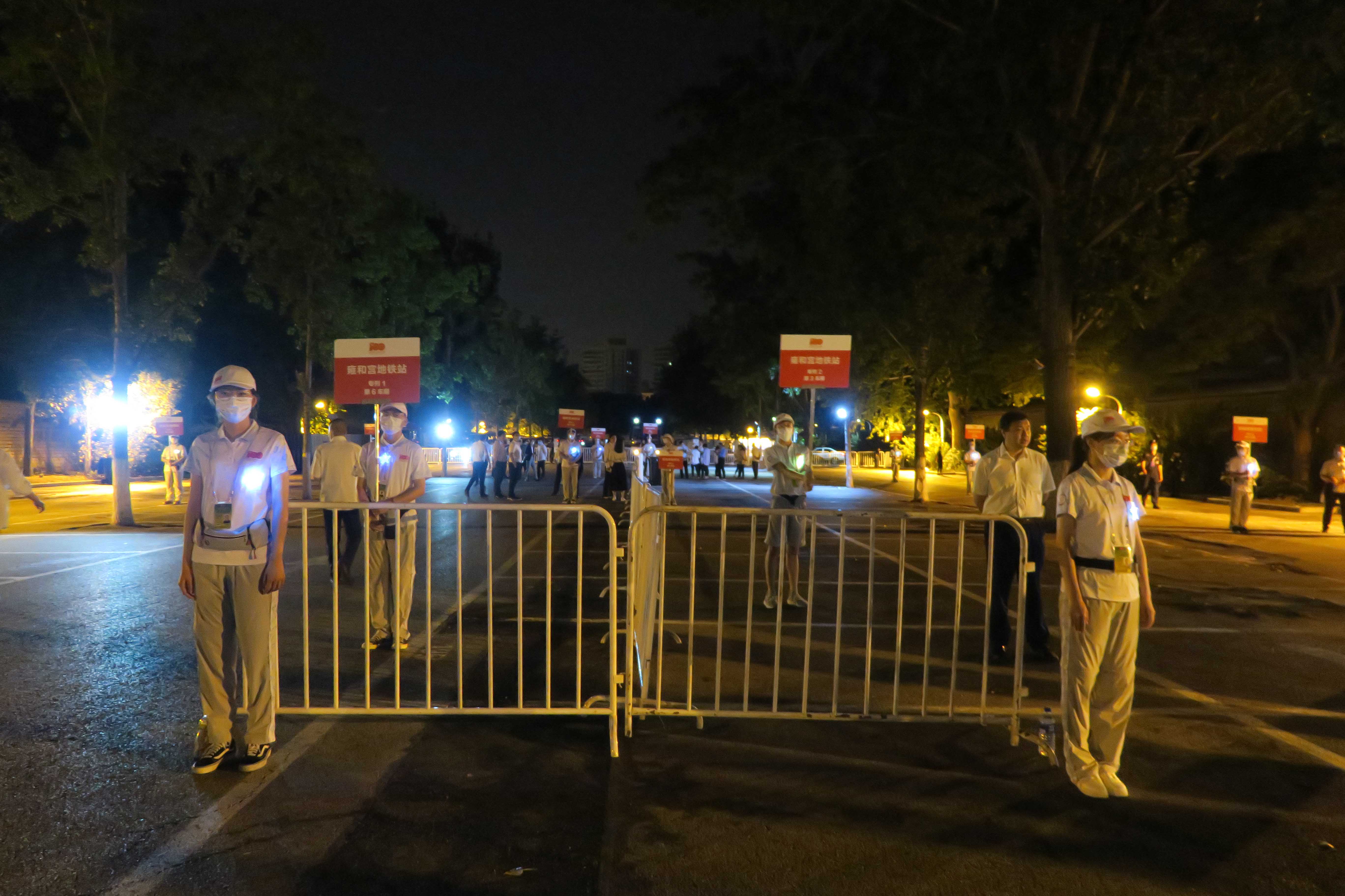 7月1日0點,大家的情緒逐漸激動,身著潔白服飾的志愿者們在黑夜中格外顯眼,大家都在各自的崗位上等待著黎明的到來。