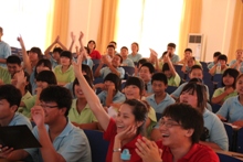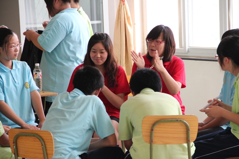 上午8點35分,由實踐團成員鄭岑主講的話劇基礎培訓課在階梯教室準時開課。盡管這是長溝中學的孩子們第一次接受與話劇有關的輔導培訓,但是我們可以明顯地感受到他們對于話劇的濃厚興趣。當鄭岑向大家提問“聽到‘話劇’這個詞的第一感覺”時,孩子們紛紛舉手發言,給出了“優美”、“要通過大家的齊心協力來完成”等令人滿意的答案。