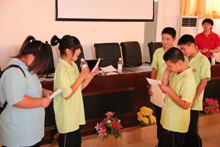 孩子們在聽課的過程中都表現得非常專注,盡管這是一個從未涉及過的領域,但他們都試圖用心去慢慢體會主講人所提到的表演要點。而在舉例說明情感和語言的運用方法時,剛剛在第七屆“商之夜”晚會上有過精彩表現的鄭岑也即興表演了兩句當時的經典臺詞,博得了孩子們熱烈的掌聲。