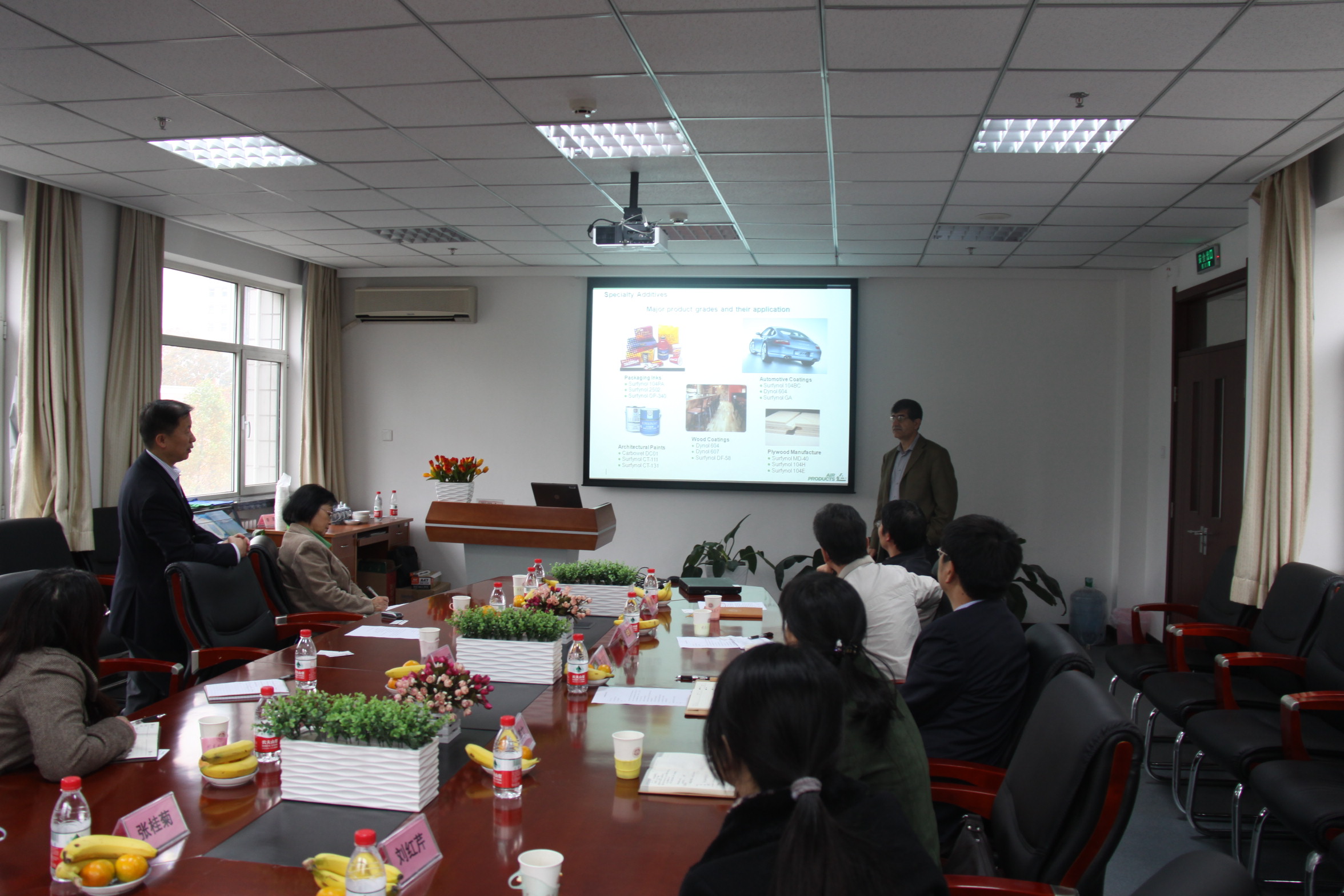 食品學(xué)院韓富博士簡(jiǎn)單匯報(bào)了與空氣化工公司的兩次項(xiàng)目合作,在項(xiàng)目總結(jié)基礎(chǔ)上提出對(duì)空氣化工公司產(chǎn)品進(jìn)入國(guó)內(nèi)市場(chǎng)的工作建議。