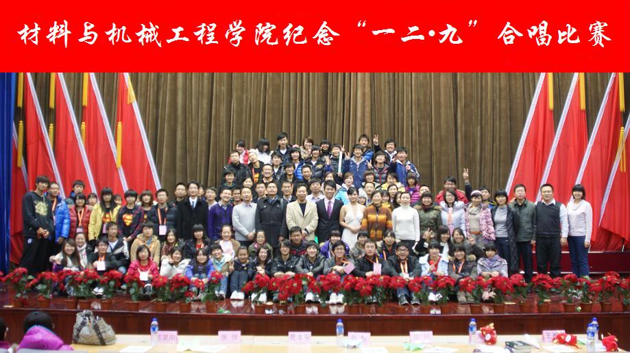 12月6日晚,為紀念“一二·九”運動76周年,材料與機械工程學院在良鄉校區舉辦了紀念“一二·九”合唱比賽。出席大會的有學院院長蔡強、黨總支書記呂東燕、副院長楊彪、項輝宇、黨總支副書記馬春暉、校團委王賽男、兄弟院系輔導員以及材機學院輔導員和班主任老師。