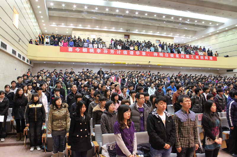 國(guó)家獎(jiǎng)學(xué)金的獲得者張?chǎng)诬S同學(xué)和水中機(jī)器人大賽二等獎(jiǎng)獲得者焦志鑫同學(xué)分別發(fā)表了獲獎(jiǎng)感言。教師代表孫曉容希望同學(xué)們要?jiǎng)俨或湐〔火H,繼續(xù)努力前行。新生代表白宗源的發(fā)言表達(dá)了2011級(jí)新生同學(xué)們積極向上的決心。