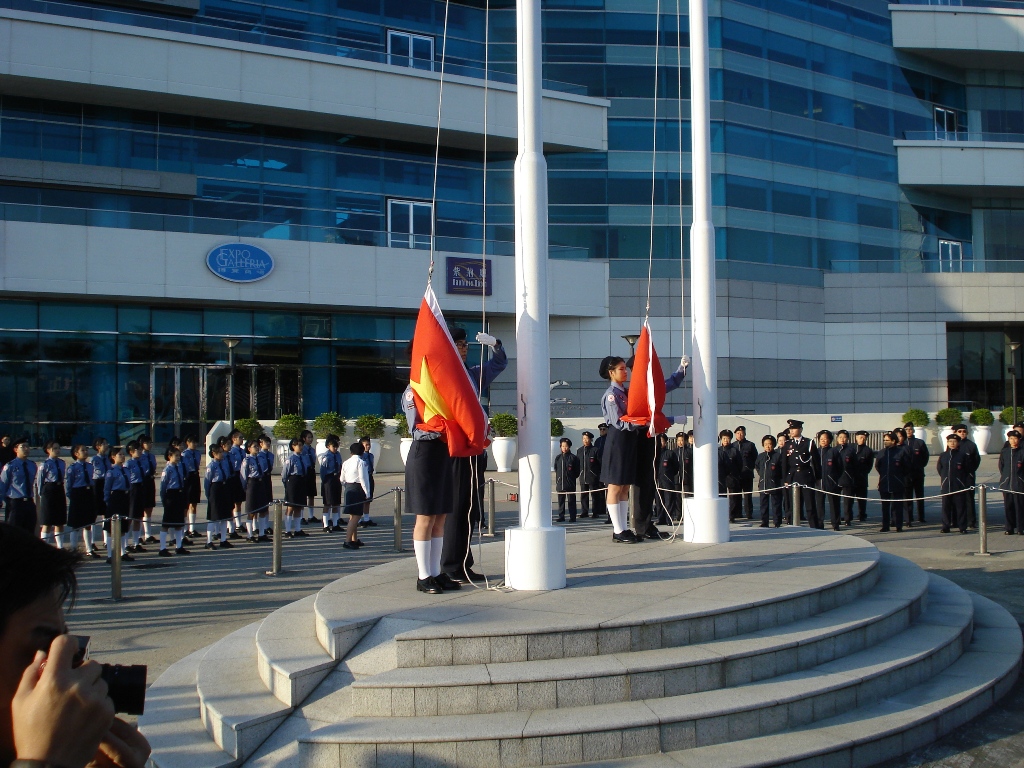 香港會展中心廣場升旗儀式 香港科技大學全貌——臨海處是學生公寓