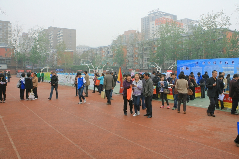 在體育場中央的巨幅展板前面,記者注意到一位老爺爺,他正在拿著筆仔細的記著北京工商大學經(jīng)濟類專業(yè)的招生計劃。他告訴記者:他的外孫女目前就讀于北京五十五中的高三文科班,今年就要高考了。自己通過收音機廣播得知在北京工商大學有這樣一個校園開放日的活動,于是老人家就趕來了。這位老爺爺已經(jīng)76歲高齡了,他笑著回答完記者的問題,便拿著手中的本子,又融入到了人海之中。