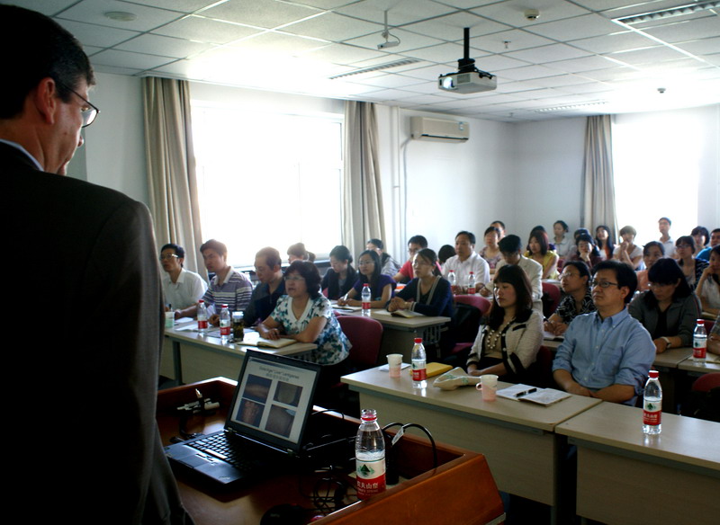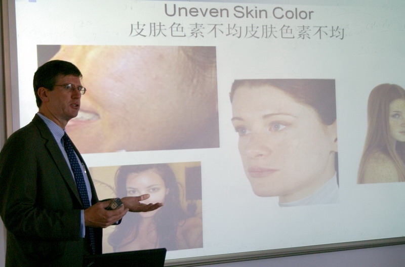 Jones博士為理學院師生做了題為皮膚色素沉淀:來自化妝品行業的展望的專題報告。介紹了皮膚色素沉著和皮膚科學的最新研究進展。其中重點介紹了皮膚美白研究中的傳統和現行的靶測試方法和人體皮膚細胞培養、生物工程構建的皮膚以及基因敲出技術在皮膚美白與膚色均勻研究中的應用。Jones博士還回答了師生的提問。此外,化妝品技術團隊還與Jones博士就國際化妝品行業目前狀況和發展方向進行了探討,并約定下次講座內容和時間,雙方計劃今后在科技交流、國際學術互訪和交換培養學生(本科和研究生)方面能夠開展更廣泛的合作。