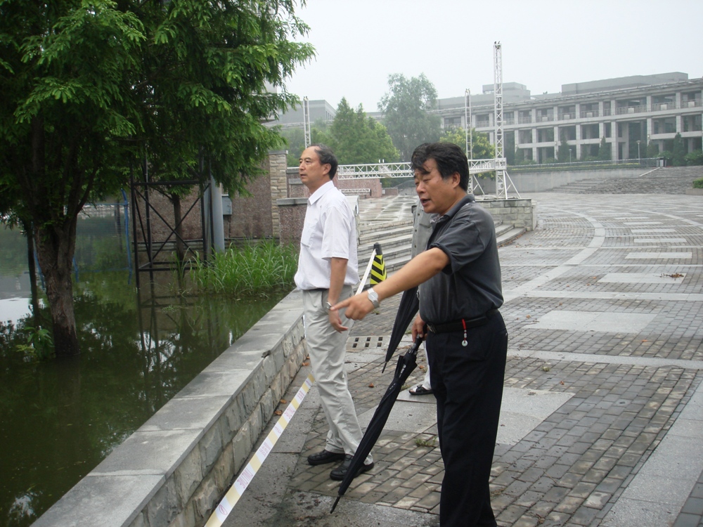 7月26日,黨委副書記盧思鋒到良鄉校區了解學生情況,檢查學校的防汛工作。 盧思鋒副書記來到教學區和學生生活區檢查工作,了解在校學生的學習、生活情況,詢問學生對雨天防災的認知,了解教學區下沉式廣場、辦公室、文體館、操場等樓宇和場館的安全情況和設施設備的使用情況,并在學校應急指揮中心監控室查看了21日當天雨情的監控錄像資料。 保衛處負責人到場匯報了良鄉校區有關防汛工作。盧思鋒副書記對堅守在救災第一線的干部和保安員表示慰問,并針對近期可能出現的水情,提出了進一步的工作要求。