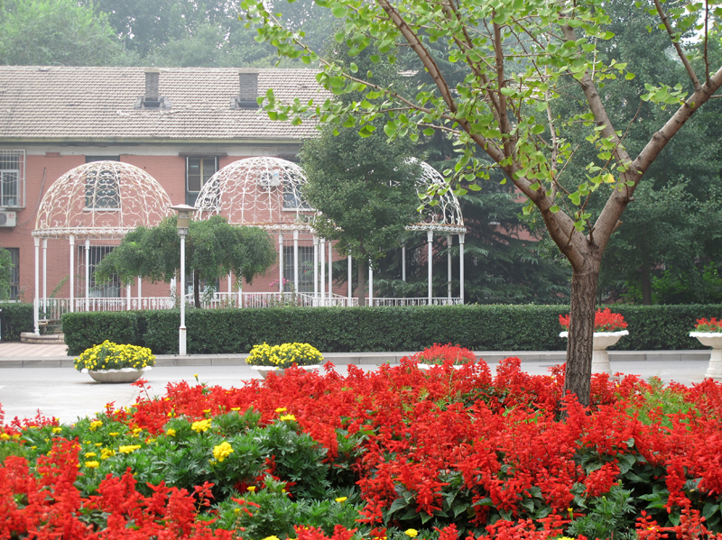教一樓改造和屋頂防水保溫花園工程正在緊張施工,預(yù)計(jì)11月底竣工。中一樓和中二樓此前經(jīng)過(guò)了改造,樓中間新布置了花壇,每樓的一層布置了鐵藝花籃,別有情趣。
