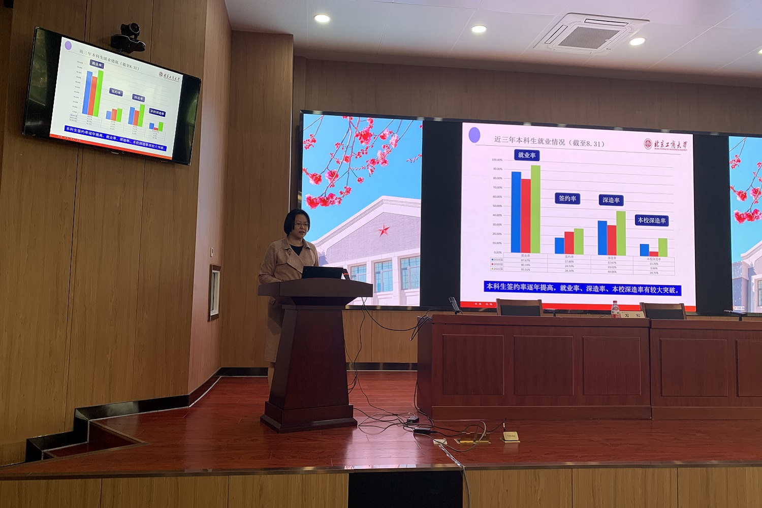 在就業工作方面,按照《北京工商大學2022年就業工作實施意見》要求,一要壓實主體責任,落實全員就業。各學院院長是學院就業工作第一責任人,黨委(黨總支)副書記為直接責任人,研究生導師也是就業的直接責任人,整個學院全體教師要形成一盤棋,統一思想,形成合力,層層落實,各個推進。二要摸清畢業生就業狀況底數,將就業工作做實做細。就業工作隊伍要了解畢業生就業心態,做到一人一策,及時溝通就業進展,把最好的資源和服務提供給畢業生。三要把訪企拓崗工作做到實處。學校立足北京,服務首都,人才培養的重點是與北京城市發展相匹配,訪企拓崗不僅是開拓更多崗位資源,也是全面了解專業人才需求,完善人才培養方案的重要過程。四是重視實踐基地建設。豐富畢業生實習實踐經驗,為畢業生就業工作打下良好基礎,達成本年度就業工作目標。