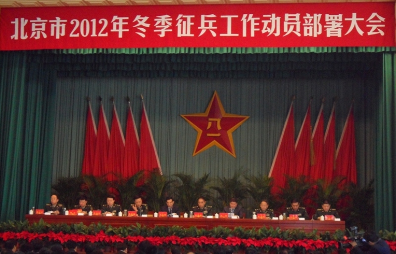 會上,北京市洪峰副市長介紹了2012年冬季征兵工作的主要政策規定,北京市衛戍區鄭傳福司令員做出了部署動員,軍地領導為2011年冬季征兵先進單位進行了頒獎。北京市代市長王安順出席了大會并就2012年的冬季征兵工作提出了希望和要求。