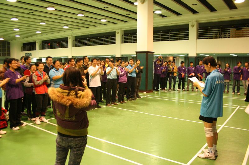 上午9時,副校長方德英、校工會常務(wù)副主席田宏為本次比賽開球,并宣布比賽開幕。我校教工乒乓球、羽毛球團(tuán)體及單項比賽是傳統(tǒng)賽事,本屆團(tuán)體比賽為第六屆。組織有序,競爭激烈是本次比賽的突出特點,許多場次直到?jīng)Q勝局才分出伯仲。歷經(jīng)九小時,兩個項目近200余場爭奪,選手們揮汗如雨,奮力拼博,拉拉隊吶喊助威,氣氛熱烈。下午6時比賽全部結(jié)束,選手們交流了球技,增進(jìn)了友誼。