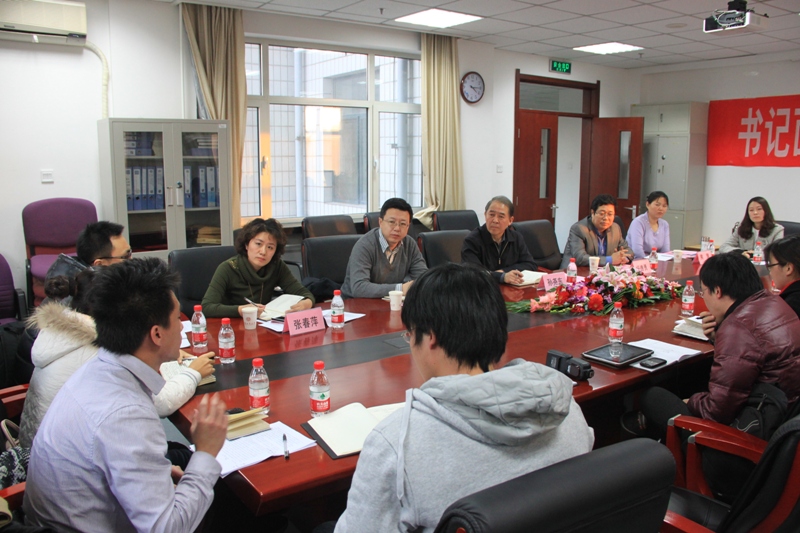 研究生輔導(dǎo)員陳昊陽、張娜娜和12名研究生代表先后發(fā)言。大家結(jié)合實際暢談了學(xué)習(xí)十八大報告的體會,并就開展的學(xué)習(xí)十八大黨支部主題活動和研究生黨校學(xué)習(xí)情況、黨建情況、專業(yè)學(xué)習(xí)、就業(yè)等進行了交流。孫堯東不時詢問研究生黨支部活動開展、研究生工作和學(xué)生專業(yè)學(xué)習(xí)情況,認真記錄大家對學(xué)校工作提出的意見建議。