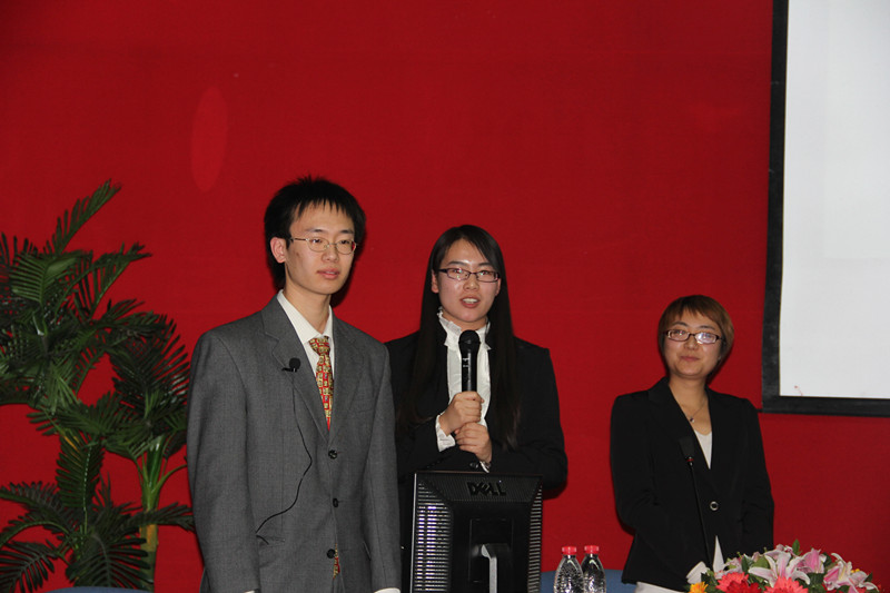 答辯當(dāng)天,注會102班的三名代表身著正裝,以班歌開始了班級展示。接下來,他們以視頻的形式向大家展示了班級建設(shè)的具體情況。視頻從思想建設(shè)、學(xué)習(xí)爭先、特色制度、工作貢獻(xiàn)、繽紛生活、璀璨成果、寄語展望等七方面全面展現(xiàn)了班級建設(shè)情況,并重點(diǎn)介紹了本班在思想、黨團(tuán)建設(shè)中的優(yōu)秀成果,以及緊跟十八大腳步,學(xué)習(xí)十八大精神和參與“首都百萬師生微黨課”的情況。視頻結(jié)束之后,現(xiàn)場專家和評委對班級展示進(jìn)行提問,針對注會專業(yè)的特點(diǎn)以及班級互幫互助的學(xué)風(fēng)建設(shè)提出了問題。
