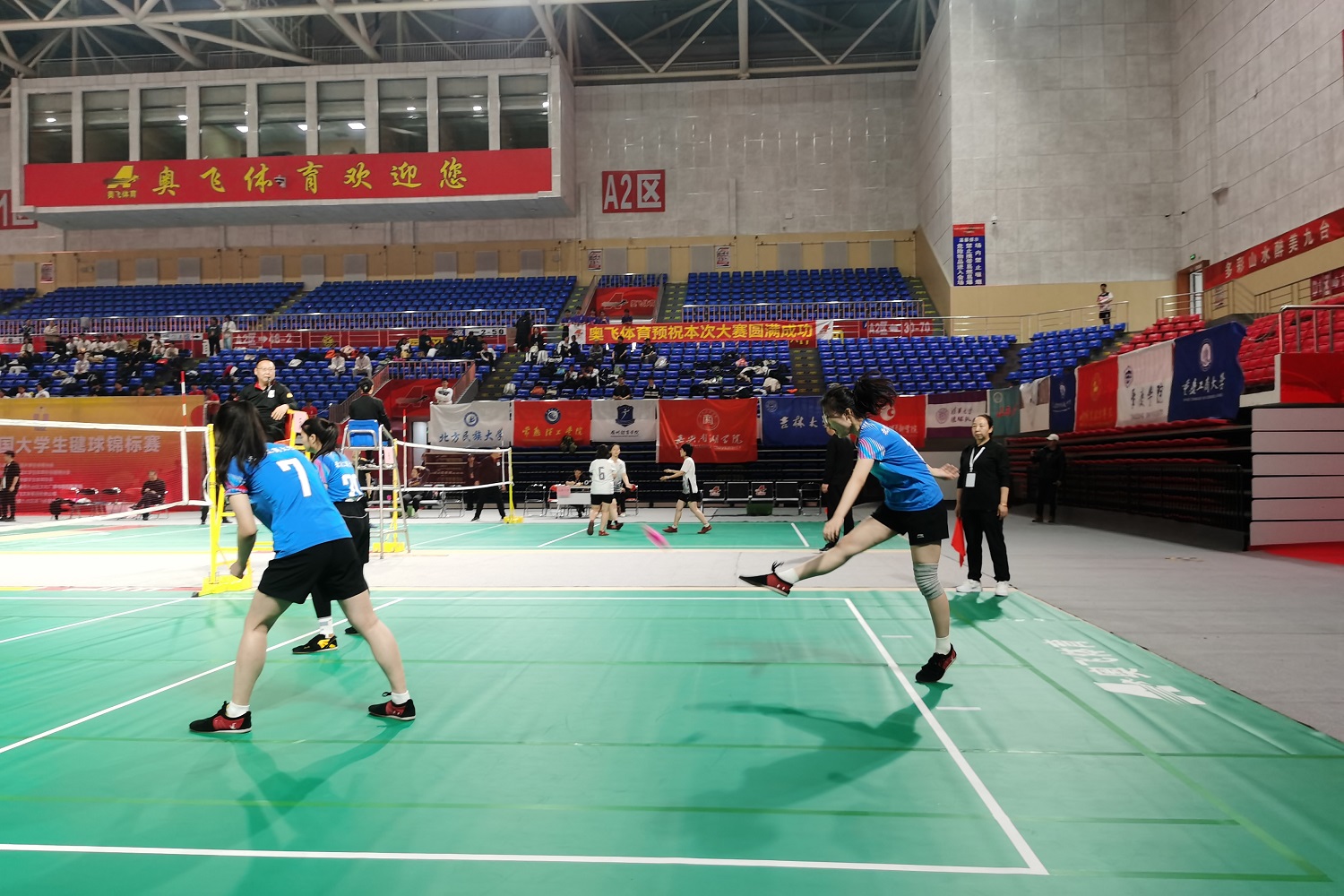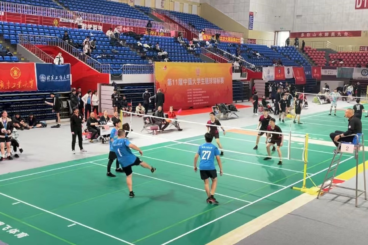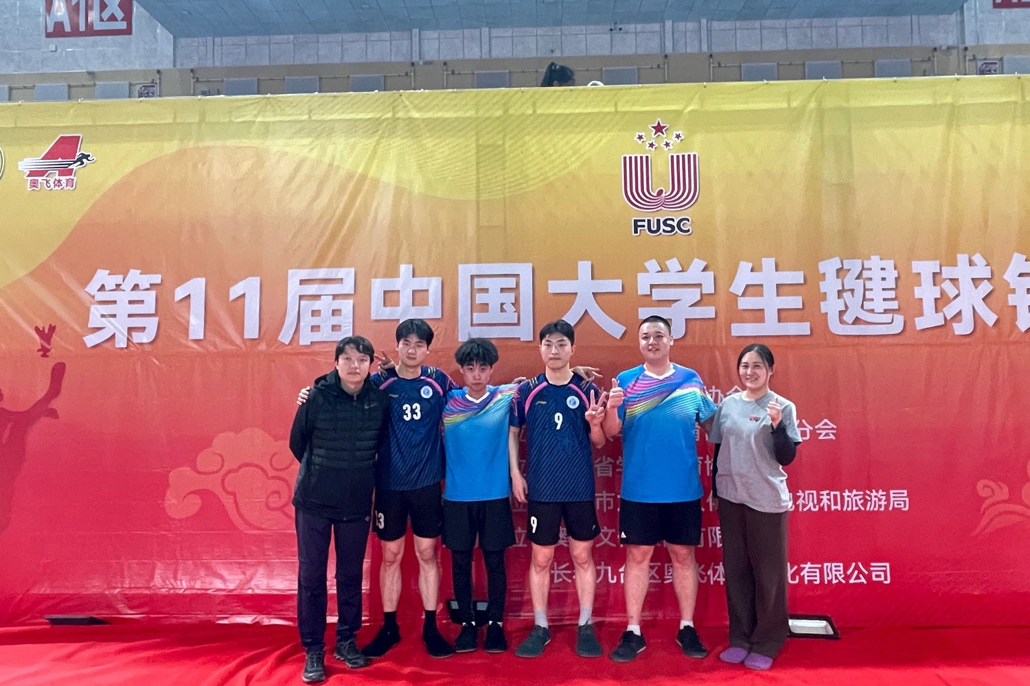 本次賽事由中國大學生體育協會舉辦,共有來自全國各省市35所高校、405名運動員參賽。我校參賽隊在教練、體育與藝術教育部李鑫楠的帶領下參與了多項賽事。在平踢毽球男子雙人賽中,由我校毽球隊隊長任相睦、孫國良出戰,他們曾于2021年取得全國男雙第三名。經過兩年的磨合沉淀,本次比賽面對山西大學、廣東工業大學、山東工商學院等強隊,二人與李鑫楠教練潛心分析對手打法,采用多種戰術全面反擊,多次出現讓一追二的精彩局面,一路過關斬將挺進決賽。最后在總決賽中,面對蟬聯多屆冠軍的重慶理工大學,兩位隊員奮力一搏,最終以11:8的比分惜敗,止步于全國第二名,取得了銀牌。