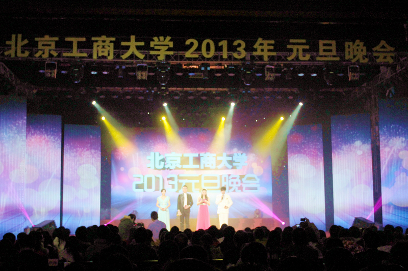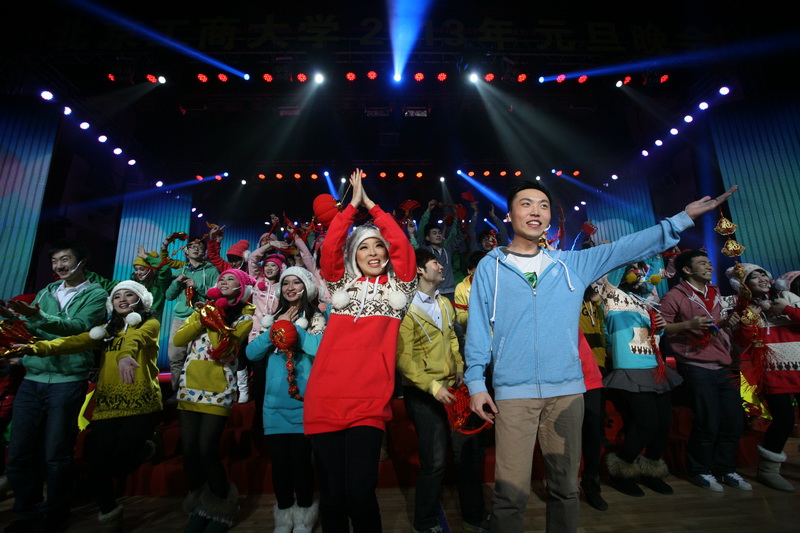 閃爍的彩燈裝扮著歲末的工商校園,用笑臉拼成的“2013”彩燈絢麗、溫馨,繽紛的舞臺(tái)、彩色的拉花、金色“HAPPY NEW YEAR”充氣氣球以及此起彼伏的歡聲笑語(yǔ)與祝福,文體館內(nèi)外處處洋溢著歡樂(lè)喜慶的節(jié)日氣氛。12月31日,以“中國(guó)夢(mèng)、工商情”為主題的北京工商大學(xué)2013年元旦晚會(huì)在良鄉(xiāng)校區(qū)文體館隆重舉行。