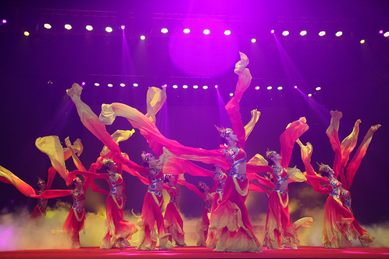 繽紛的長(zhǎng)袖,曼妙的舞姿,炫麗的燈光,夢(mèng)幻的煙霧……由校舞蹈團(tuán)帶來(lái)的《水袖長(zhǎng)舞》為觀眾帶來(lái)了一場(chǎng)視覺(jué)盛宴。