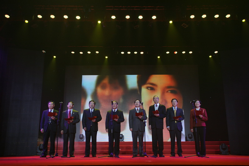 校領(lǐng)導(dǎo)孫堯東、譚向勇、盧思鋒、張德玉、孫寶國(guó)、謝志華、李朝鮮、張?jiān)排c廣大師生及校友代表歡聚一堂,喜迎新年。
