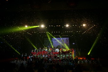 電影《金陵十三釵》主題曲《秦淮景》的演唱者徐惠芬受邀來(lái)到了晚會(huì)現(xiàn)場(chǎng),她用溫婉的曲調(diào)深情獻(xiàn)唱了《秦淮景》和《太湖美》。現(xiàn)場(chǎng)觀眾們合著樂(lè)曲揮舞著手中的熒光棒,匯聚成了一片燈的“海洋”。