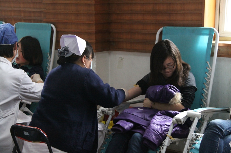 很多同學都是第一次參與到獻血的活動中來,有些女生面對針頭也多了些許的恐懼感。”我剛才是有些害怕,今天是我第一次獻血,我剛過了十八歲的生日,這次獻血算是作為送給自己的一個成年禮物吧。我剛剛在獻血的時候護士也非常好,一直在跟我說話,讓我減緩緊張情緒。”材機學院的大一學生黃新果如是說道,她表示以后還會參加獻血活動。