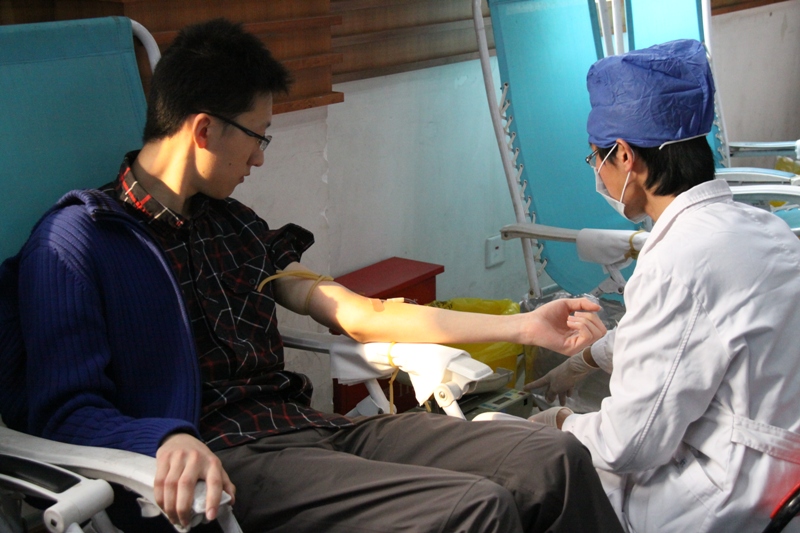 獻血過程中大家積極踴躍,但也有同學出現身體不適的狀況。鑒于此,校醫室劉美珍大夫提醒大家:”提前做好準備工作,獻血前不要劇烈運動,感冒、吃藥或生理期的同學最好不要參加獻血。另外,因為獻血是在上午進行,所以大家一定要吃早飯,但是最好不要吃過于油膩的食物。”