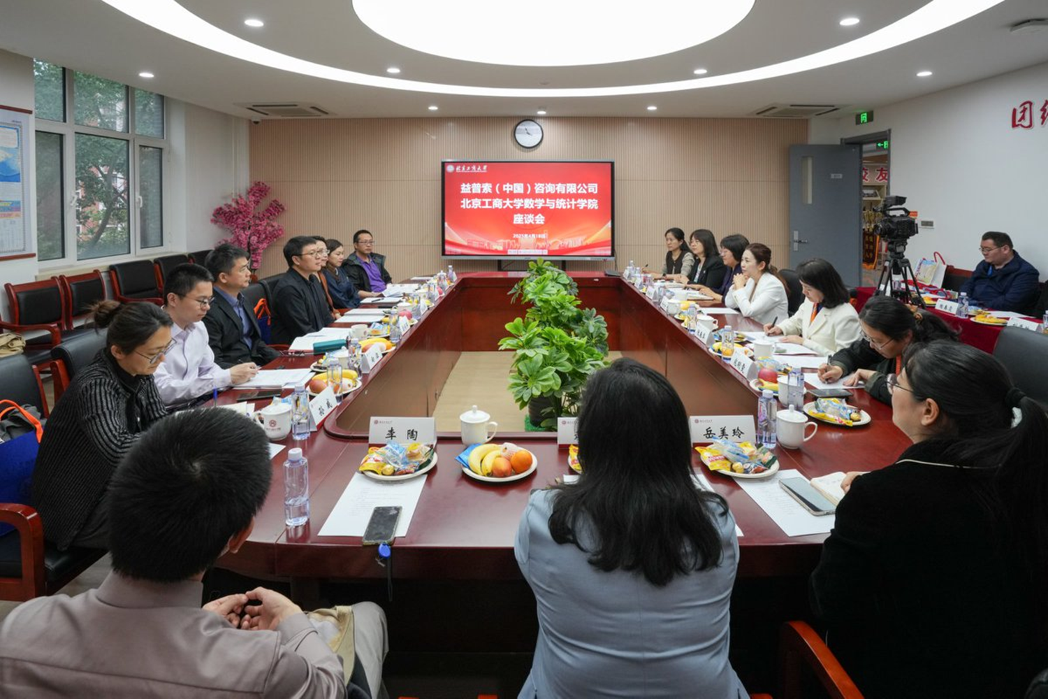 冠名揭牌儀式后,數(shù)學(xué)與統(tǒng)計(jì)學(xué)院與益普索(中國)咨詢有限公司就如何深化學(xué)科專業(yè)共建進(jìn)行了座談,徐丹丹副校長應(yīng)邀參加活動(dòng)。會(huì)上學(xué)院介紹了統(tǒng)計(jì)學(xué)科發(fā)展建設(shè)情況、創(chuàng)新書院“益普索班”的籌備情況、“立豐杯”市場調(diào)查與分析大賽開展等情況,感謝劉立豐校友和益普索中國給予學(xué)院發(fā)展的大力支持。雙方結(jié)合數(shù)學(xué)統(tǒng)計(jì)學(xué)科發(fā)展的歷史使命,就如何發(fā)揮益普索公司在數(shù)據(jù)分析和戰(zhàn)略咨詢等方面的專業(yè)優(yōu)勢,深化與我校的產(chǎn)學(xué)研協(xié)同創(chuàng)新,加強(qiáng)項(xiàng)目研究,培養(yǎng)更多復(fù)合型人才等進(jìn)行了充分的溝通交流。