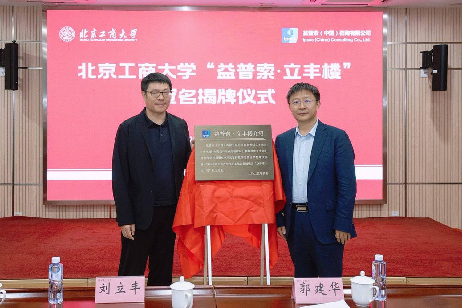 郭建華、劉立豐共同為“益普索·立豐樓”揭牌,開啟了我校與益普索中國合作的新篇章。