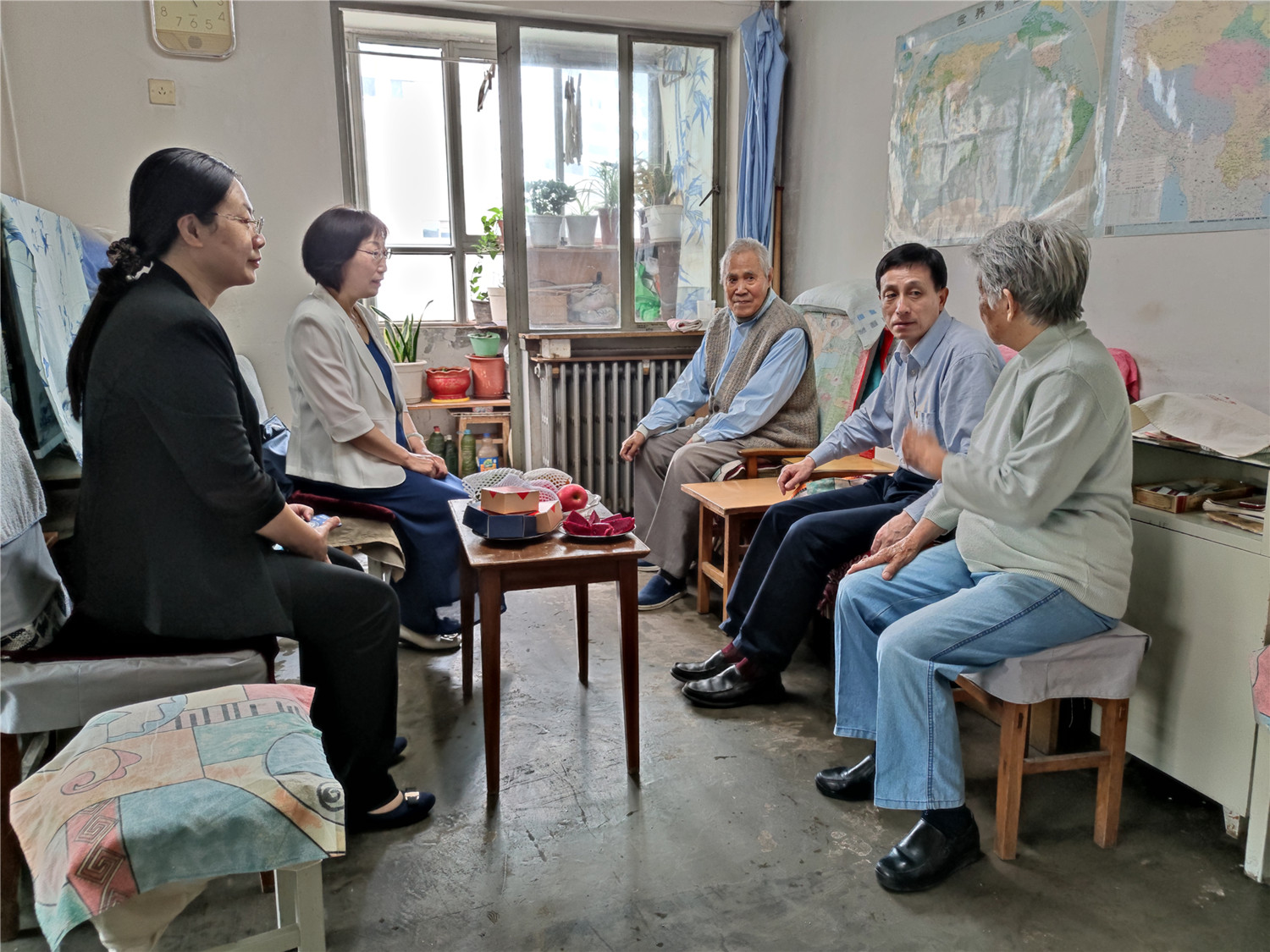 王偉一行先后來到離退休老同志吳同硯和丁士堃家中,與他們親切交談,詢問身體及生活情況,感謝他們為學校發展建設作出的貢獻,希望老同志們一如既往關心和支持學校工作。在國慶佳節到來之際,衷心祝愿老同志們節日快樂,幸福康健!王偉副書記與老同志們促膝交流,了解老同志們的困難需求和對學校的意見建議,叮囑他們保重身體,保持樂觀心態,安享幸福晚年。