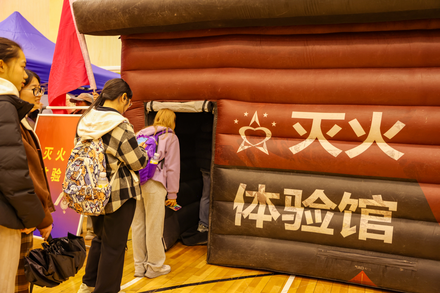 此外,房山區(qū)消防救援局和電動(dòng)自行車領(lǐng)域?qū)<覟榇蠹铱破樟穗妱?dòng)自行車起火原因、撲救方法和日常預(yù)防措施,并現(xiàn)場解答了師生們關(guān)心的消防安全問題。會(huì)場內(nèi)設(shè)置了消防器材展示、煙熱逃生帳篷、模擬滅火屋、火災(zāi)隱患排查體驗(yàn)屋等多個(gè)項(xiàng)目,在現(xiàn)場消防宣傳員的引導(dǎo)和講解下,參會(huì)師生現(xiàn)場進(jìn)行了沉浸式體驗(yàn),通過親身感受和實(shí)操,不僅讓師生對如何發(fā)現(xiàn)消除身邊火災(zāi)隱患有了直觀了解,也有效提升了廣大師生應(yīng)對突發(fā)火情時(shí)妥善處置和安全逃生的技能水平,得到了大家一直好評。活動(dòng)最后,參會(huì)師生共同在“消防安全進(jìn)校園”簽名墻上簽名,留下了共同筑牢校園消防安全防線的鄭重承諾。