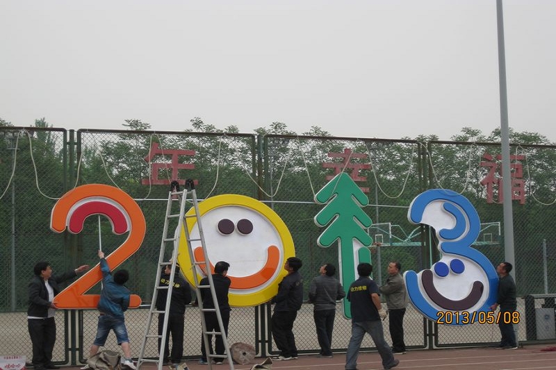 在運(yùn)動(dòng)會(huì)開幕的前兩天,后勤管理處的同志們紛紛行動(dòng)起來,全力做好運(yùn)動(dòng)會(huì)開幕式的照明、會(huì)場布置、音響設(shè)備安裝、食堂菜品等各項(xiàng)準(zhǔn)備工作。后勤管理處處長盧燦寬介紹,“為了保證操場觀禮臺的亮度,5月8日一大早,天空中飄著小雨,動(dòng)力維修科的電工師傅們趕赴良鄉(xiāng),支援良鄉(xiāng)操場的大型吊燈安裝工作。此次燈具安裝任務(wù)十分艱巨,安裝人員需要乘坐長臂吊車,在棚頂處安裝射燈,作業(yè)面小,且?guī)в幸欢ǖ奈kU(xiǎn)性。這項(xiàng)工作要求安裝人員既要有過硬的技術(shù),又要有膽大心細(xì)的勇氣。” 當(dāng)我們在亮如白晝的運(yùn)動(dòng)場上觀看精彩的開幕式表演時(shí),我們不曾看到的是,后勤管理處同志們安裝、拆卸各種設(shè)備時(shí)流下的汗水。
