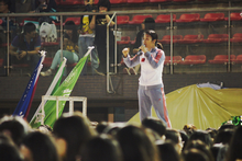 “寶貝兒們加油,咱們再練一遍好么?”一個(gè)月來,指導(dǎo)老師王立紅的聲音每晚都會(huì)準(zhǔn)時(shí)回蕩在操場上。王老師每天都會(huì)站在一個(gè)臨時(shí)搭建的高臺上,指揮著各個(gè)方陣的隊(duì)型變換,她清脆的嗓音透過話筒傳到操場的每個(gè)角落,方陣的變化日漸清晰明朗起來。“從4月27日第一次整體合練,到5月11日開幕式上千人團(tuán)體操的驚艷亮相,短短十幾天的訓(xùn)練能夠達(dá)到這樣高的水平,這是一個(gè)奇跡。”王立紅老師的話,讓每一位同學(xué)的付出都得到了肯定。