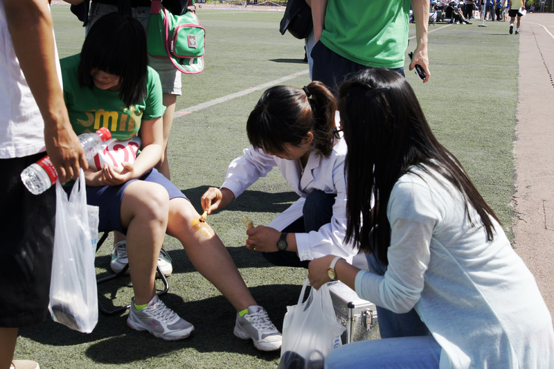 為保證同學(xué)們的比賽中的健康,校醫(yī)院在賽前多次完善預(yù)案,專門安排醫(yī)生赴比賽現(xiàn)場做保障工作。兩天的運(yùn)動(dòng)會(huì)中,醫(yī)生們多次、及時(shí)處理了同學(xué)們遇到的損傷,向同學(xué)們宣傳了科學(xué)運(yùn)動(dòng)的理念。校醫(yī)院院長楊曉明說:“通過今年的運(yùn)動(dòng)會(huì)保障工作,我們發(fā)現(xiàn)同學(xué)們不太科學(xué)的運(yùn)動(dòng)方式造成的損傷較多,比如中長跑運(yùn)動(dòng)員賽前準(zhǔn)備活動(dòng)不足造成肌肉拉傷等情況。還有部分同學(xué)因體質(zhì)較弱,出現(xiàn)暈倒等情況。針對這些情況,今后,校醫(yī)院將加強(qiáng)科學(xué)運(yùn)動(dòng)知識的宣傳,讓師生安全運(yùn)動(dòng),增強(qiáng)體魄。”