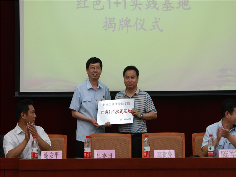 為積極響應教育部卓越法律人才計劃號召,推進學校本科教育教學改革,完善法律人才的培養模式,6月5日下午,法學院與房山法院法律公益服務合作啟動暨紅色“1+1”共建活動啟動儀式在良鄉校區模擬法庭成功舉行。房山區人民法院黨組成員、政治處主任高賀亮,政治處副主任、新聞辦主任陳軍等一行五人出席了合作暨共建啟動儀式。法學院黨總支書記呂來明、黨總支副書記文四英、副院長謝安平出席了啟動儀式。參加儀式的還有法學院11、12級全體學生,法學院團總支書記尹航主持了儀式。