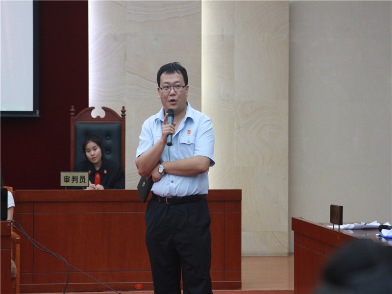 接著,我校2013年模擬法庭比賽開始。法庭審理過程分為審理開庭、法庭調查、法庭辯論、被告人最后陳述、和法庭宣判幾個環節。房山法院副廳長王洪昭對模擬法庭比賽做了深入淺出的點評。他對參賽選手的表現做出表揚,同時指出各位選手尚且存在的缺點和不足。謝安平結合法學學科的學習方法對大賽做了點評。