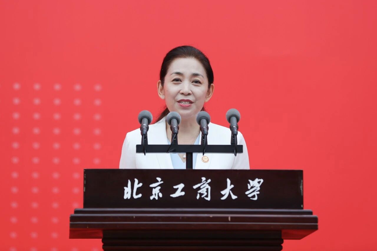 優秀校友代表、學校81級自控系校友、中國人工智能學會副理事長、北京郵電大學教授杜軍平發言,她分享了自己的求學與科研感悟,深情回顧了四十余年前在母校打下的扎實基礎,并結合自身在人工智能領域的深耕經歷,勉勵新生扎根專業,筑牢學識根基;勇于探索,激活創新基因;開闊視野,追趕學科前沿;珍惜情誼,學會協作包容。她特別指出,當前北工商以“融通、賦能、跨界、共生”為核心的“工商一體化”發展理念,為大家搭建了理論學習與實踐創新的廣闊平臺。希望新一代北工商人把握人工智能等戰略機遇,將個人成長融入國家需要,勤學篤行,協作共進,成長為有理想、有本領、有擔當的時代新人。