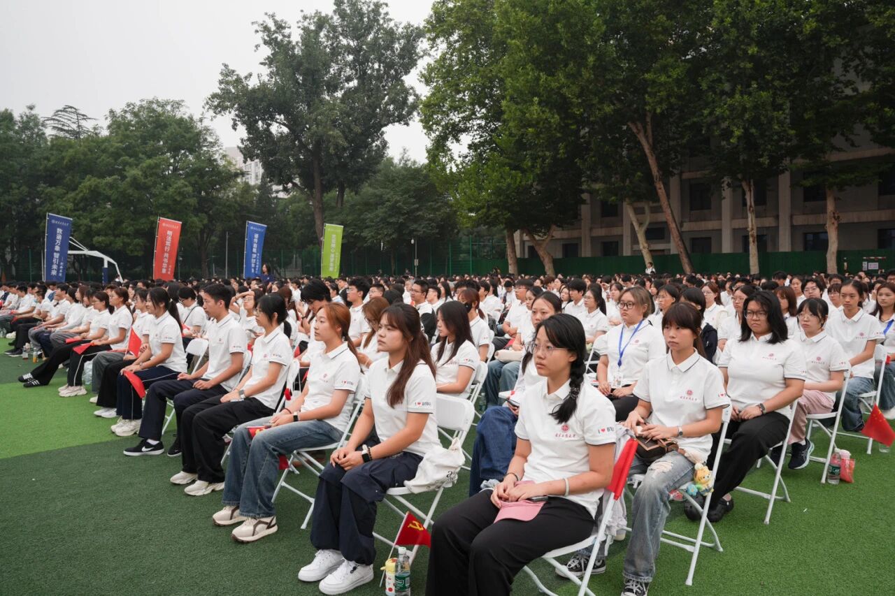 校領導為新生代表佩戴?;?,全體新生鄭重地將校徽佩戴于胸前。“求真、立德、勤奮、創新”的校訓精神在這一刻完成傳承。
