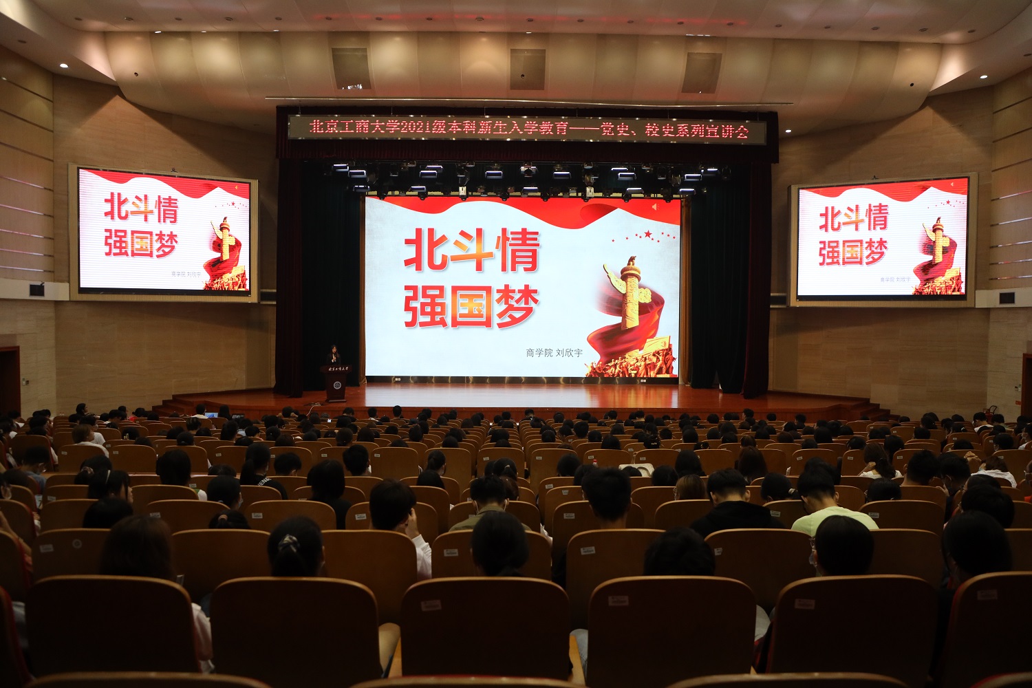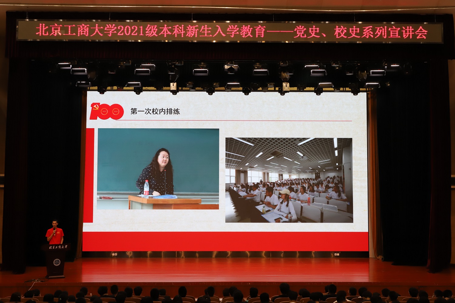 根據(jù)《北京工商大學(xué)階梯式思政教育大一年級教育大綱》安排,結(jié)合“永遠(yuǎn)跟黨走”主題教育活動內(nèi)容,9月11、12日,學(xué)校面向2021級本科新生舉辦黨史、校史系列宣講會。宣講團(tuán)成員由黨委學(xué)生工作部“不忘初心、牢記使命”學(xué)生理論學(xué)習(xí)宣講團(tuán)、“觀瀾”輔導(dǎo)員工作室中國故事宣講團(tuán)以及《偉大征程》文藝演出大學(xué)生合唱團(tuán)代表共同組成。