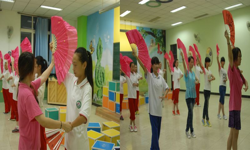 傍晚,孩子們依舊保持著極高的熱情與活力參與到藝術(shù)類課程的培訓(xùn)中。藝術(shù)類課程引起了孩子們極大的興趣。他們紛紛投入到訓(xùn)練中,一部分表現(xiàn)突出的孩子也光榮地加入到支教匯演節(jié)目的編排中。排練雖然辛苦,他們卻樂在其中,并且加倍珍惜這難得的機(jī)會,認(rèn)真學(xué)習(xí)每一個動作,每一段朗誦,每一句樂章。