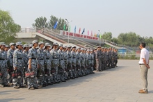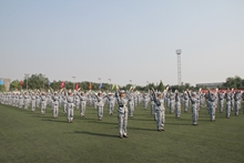 下午,在同學們拍照留念后,繼續進行了緊張的訓練。軍訓已經過半,訓練有了明確的部署與分配:行進式、警盾操、軍體拳等,其中最主要的是方陣訓練。從方陣的隊形、步伐、姿勢以及聲音等方面可以折射出參訓同學的努力程度以及吃苦耐勞的精神。