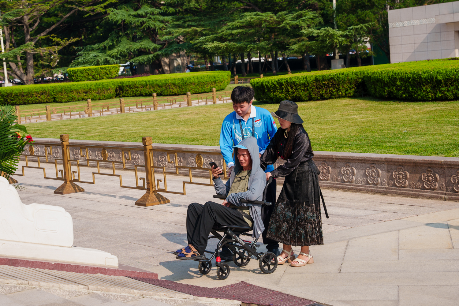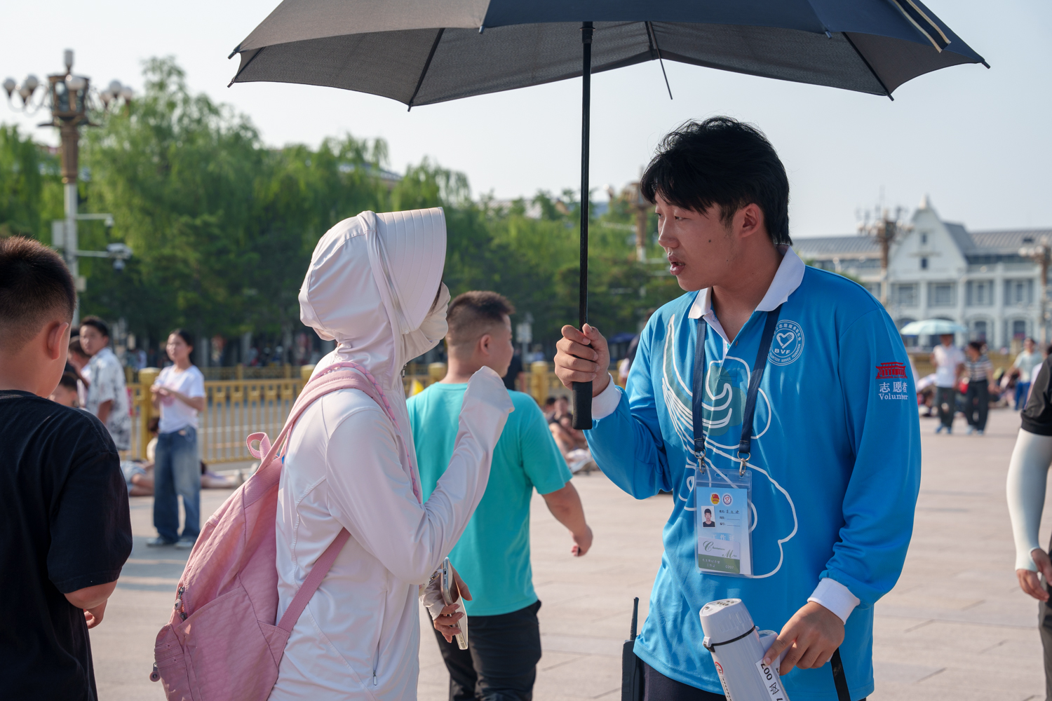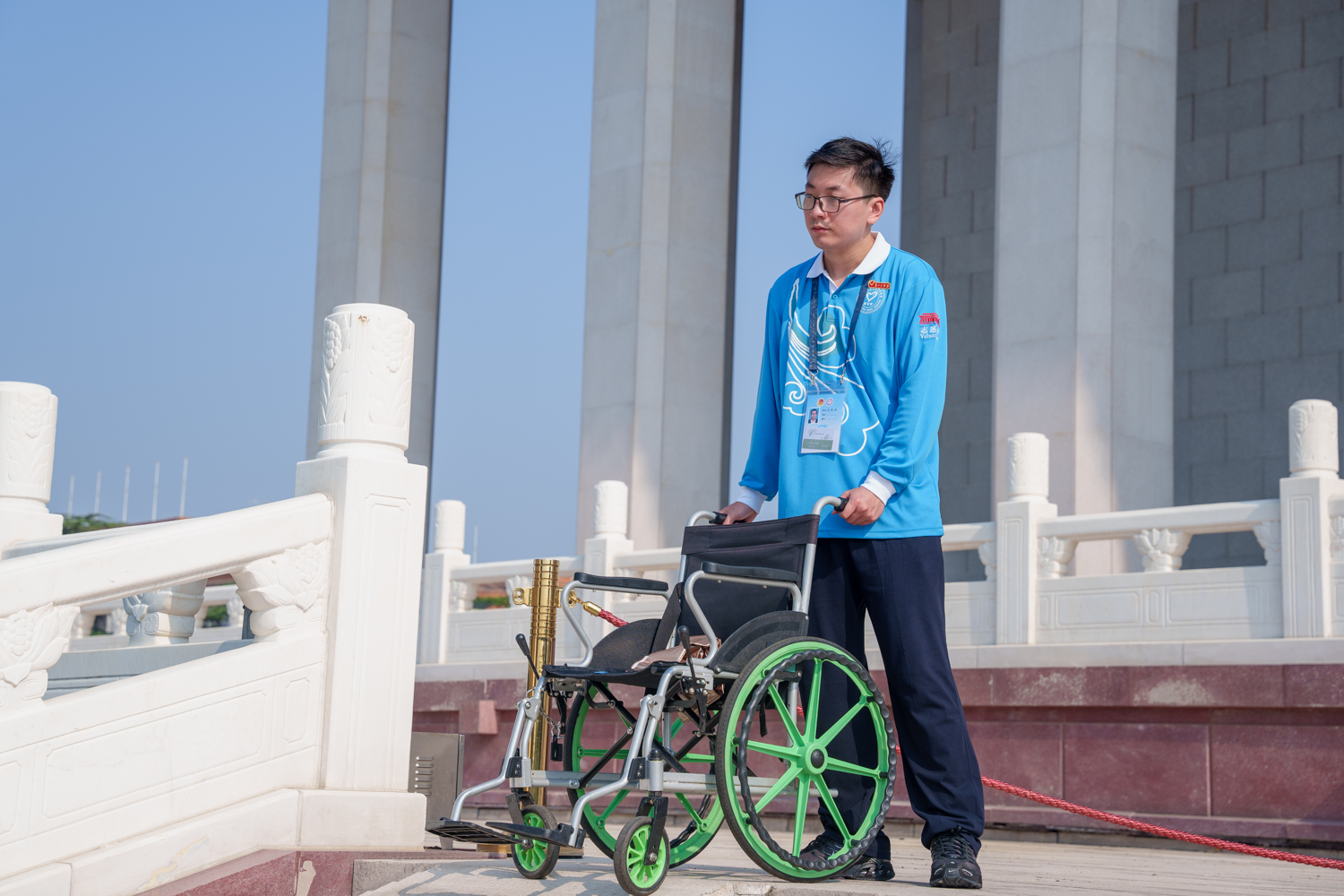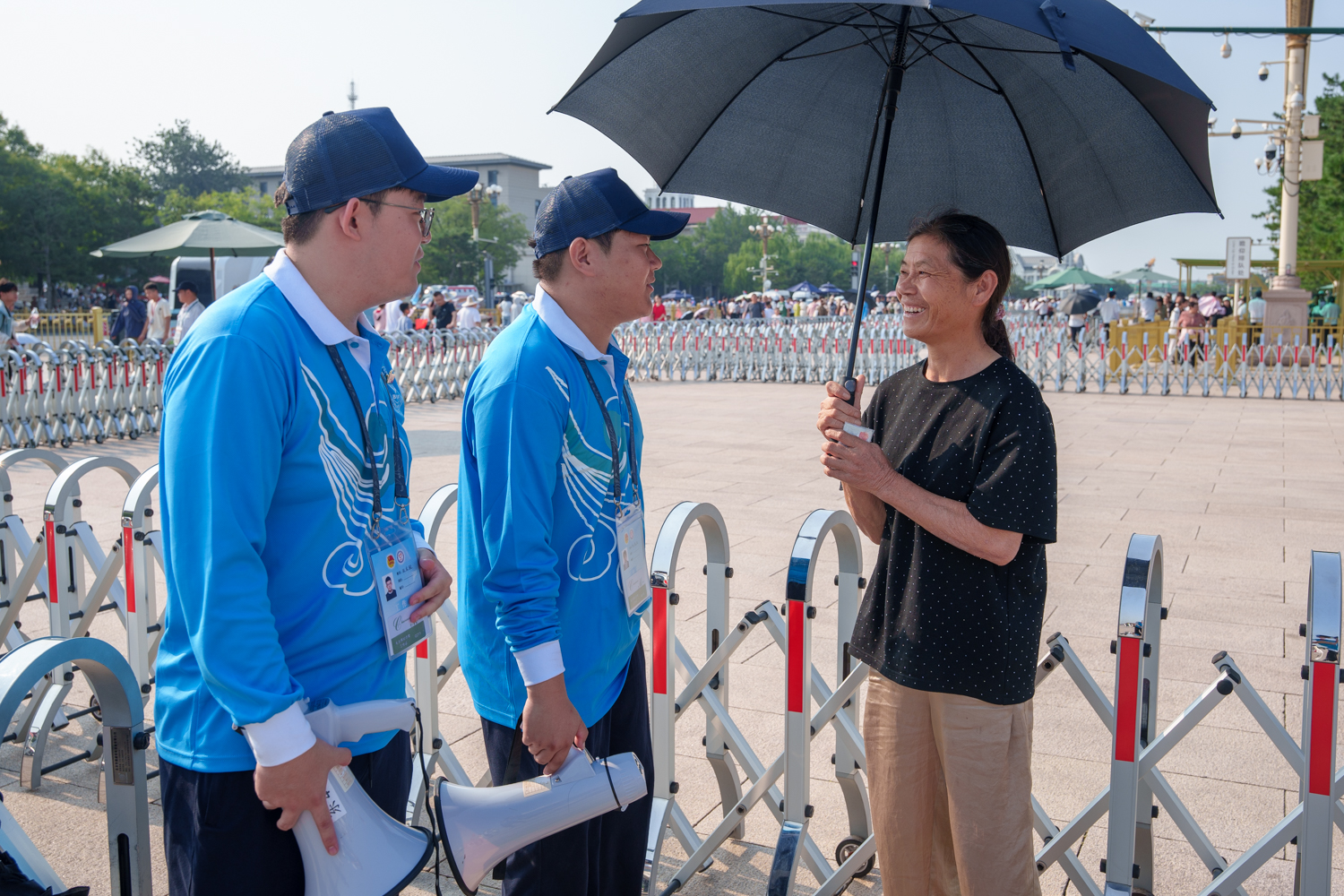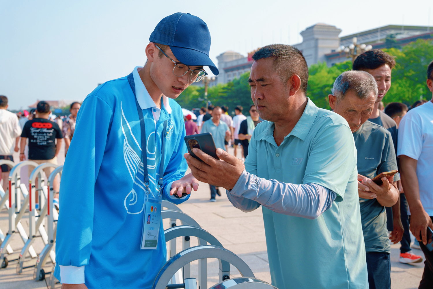 每日凌晨5點,志愿者們迎著旭日整裝集結(jié),7點前準時奔赴扶老助殘、預(yù)約指導(dǎo)、解疑答惑、秩序維護、獻花引導(dǎo)等14個不同的服務(wù)崗位。在烈日炎炎的八月盛夏,室外高溫炙烤,志愿者們的衣服雖被汗水浸透,但他們在各自的崗位上始終如一,為來自五湖四海的瞻仰群眾提供暖心、細致、周到的服務(wù):一絲不茍地維護現(xiàn)場秩序,認真細致地解答群眾疑問,悉心攙扶步履蹣跚的老人,全力協(xié)助殘障人士上下輪椅……成為天安門廣場上一道亮麗的風景線,也生動展現(xiàn)了新時代首都志愿者的良好風貌。