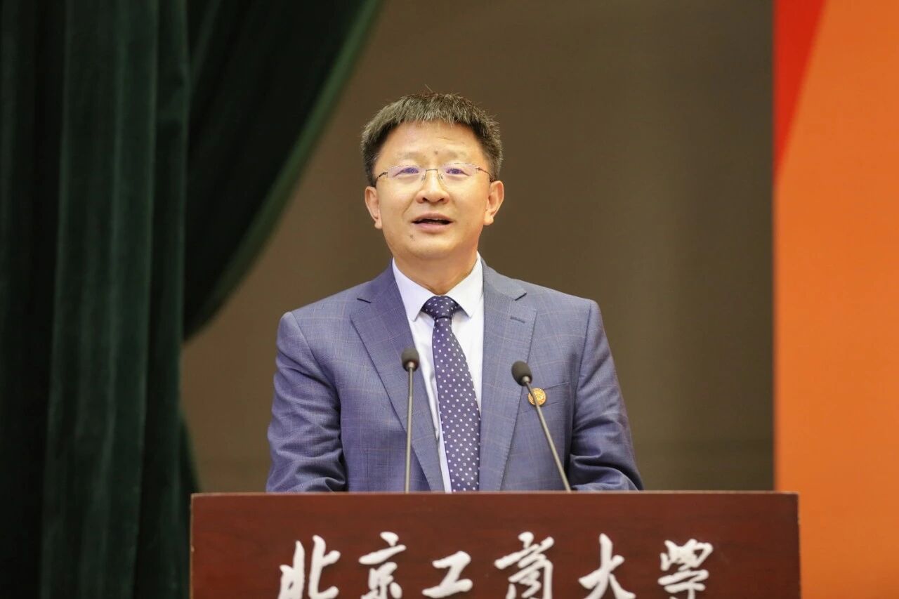 黨委副書記、校長郭建華教授以《向下扎根 向上求索》為題發表講話。他代表學校對2025級新生表示熱烈的歡迎和祝賀,向家長和老師們的悉心培養致以誠摯的感謝。他指出,當前,我國正在以中國式現代化全面推進強國建設、民族復興偉業,黨和國家事業發展對高等教育的需要,對科學知識和優秀人才的需要,比以往任何時候都更為迫切。研究生教育作為國民教育的最高層次,是國家創新體系的關鍵支撐,是拔尖創新人才自主培養的主渠道。北京工商大學高水平研究型大學的建設,離不開研究生教育的高質量發展。他闡釋了“研究”的內涵和分類,鼓勵新生找準定位,在科學探索與國家發展間找到著力點,走出有價值、有貢獻的研究之路。