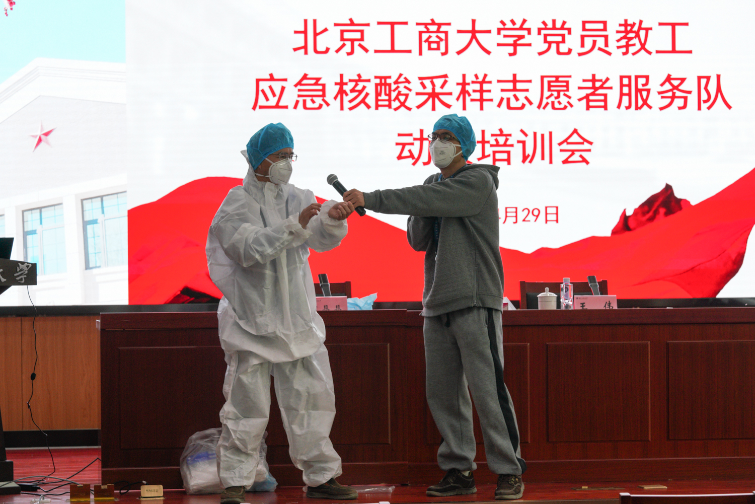 學校對黨員教工志愿者開展了集中培訓、分組輪訓、實戰實訓等,在校醫院專業醫護工作人員指導下,志愿服務隊員較快掌握了核酸采樣過程中防護服穿脫、信息錄入、現場秩序維護等工作內容和防護措施。