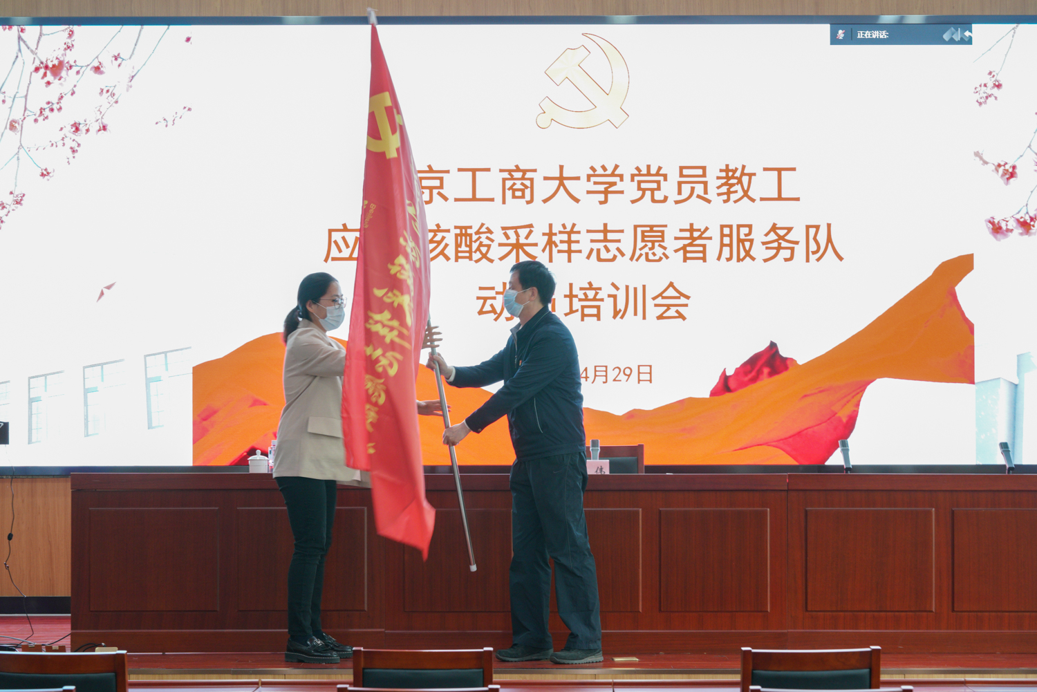 4月29日上午,學校以線下線上相結合的方式,召開黨員教工應急核酸采樣志愿服務隊動員培訓會。學校黨委副書記王偉出席會議,他肯定了黨員教工“抗疫有我、沖鋒在前”的精神品格,在關鍵時刻站得出來、頂得上去。強調要堅持黨建引領,貫徹落實上級各項工作部署,認真參與培訓、掌握專業要求、做好自我防護,出色完成抗疫任務,合力打贏抗疫阻擊戰。會上,王偉副書記為志愿者服務隊授旗。