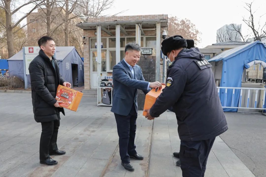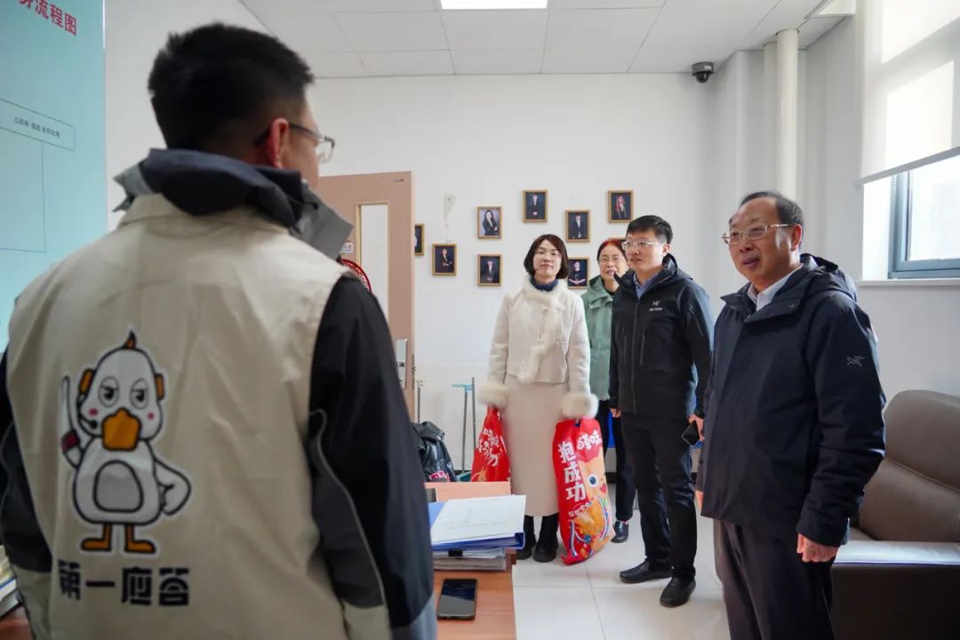 在西區綜合樓中控室、西區大門值班室,左敏看望慰問了正在值守的保安人員,為他們送上學校精心準備的慰問品,向他們表示衷心感謝,并祝愿大家新的一年萬事如意、闔家幸福,囑咐大家履職盡責做好寒假期間各項服務保障工作,確保校園安全穩定。